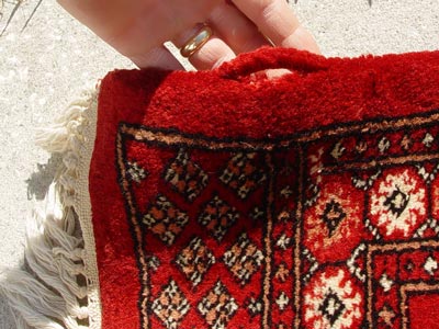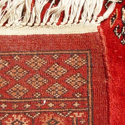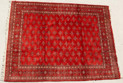 IRANIAN BOKHARA PATTERN RED WOOL CARPET: Approx. 10' 7 1/2'' X 7' 9 1/2''.