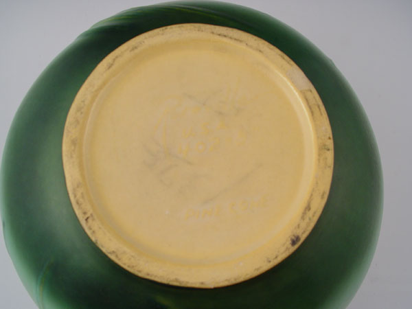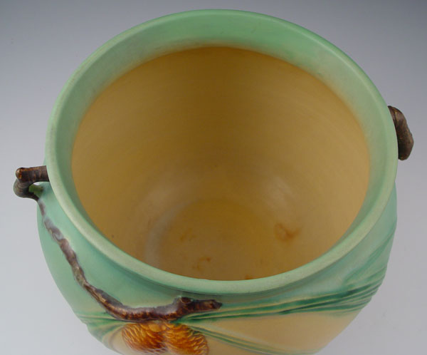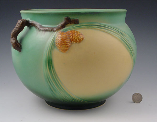 ROSEVILLE POTTERY GREEN PINECONE JARDINIERE: 9'' dia. at the rim, 8 1/2''h.
