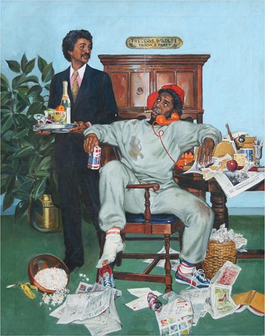 BALLANTYNE, Joyce, (American, 20th C.): Illustration for Sitcom ''The New Odd Couple'' starring Ron Glass and Demond Wilson, Oil/C, 30'' x 24'', signed, unframed, estate stamp verso.