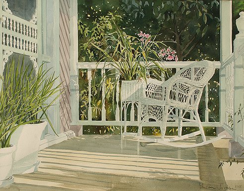 JOHNSON, Susan, (American, 20th C.): Wicker Porch, W/C, 21'' x 29'' sight size, signed, framed, 30'' x 38'', member of National Watercolor Society. Est. $300/500**