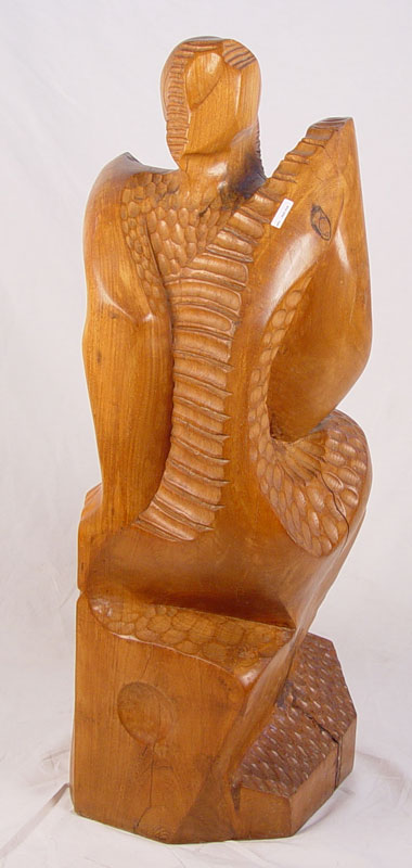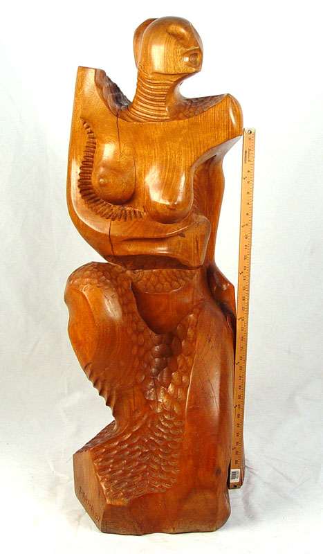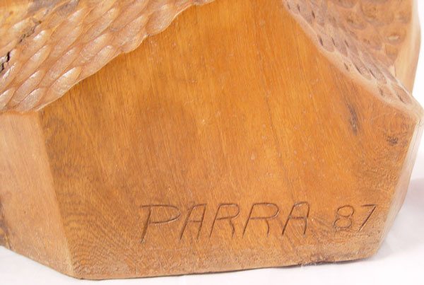 WOOD SCULPTURE HAND CARVED PARRA / 87: Measures 46'' high x 17'' wide x 18'' deep.