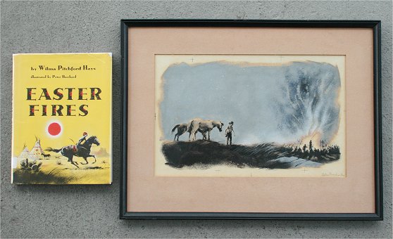 BURCHARD, Peter, (American, 20th C.): American Indian Illustration for ''Easter Fires'', Gouache & watercolor, 8'' x 12 3/4'', pencil signed, framed, 13 1/2'' x 17'', sold with book, written by Wilma Pitchford Hays.
