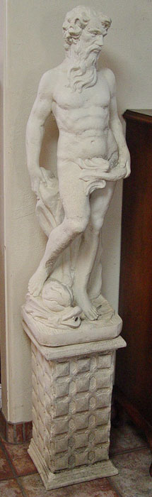 NEPTUNE CONCRETE FOUNTAIN STATUE WITH PEDESTAL BASE: 62 1/2'' tall, all inclusive.