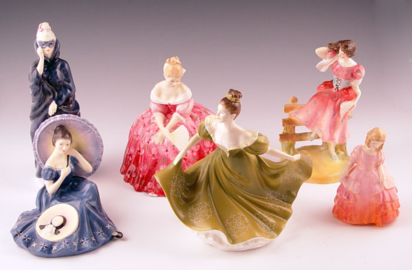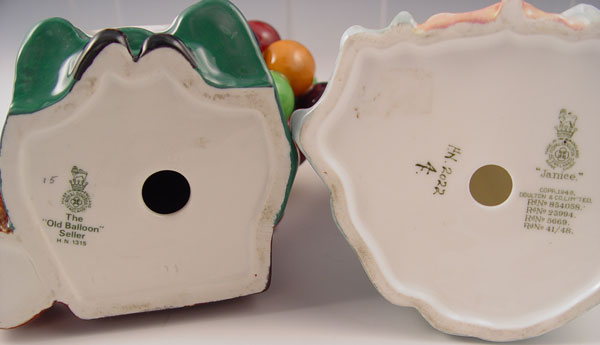 4 ROYAL DOULTON FIGURINES: To include 1) Rare HN2022 ''Janice'' 7 1/2'' high. 2) HN1849 ''Top O' The Hill'' 7 1/4'' high. 3) HN1934 ''Autumn Breezes'' 7 1/2'' high. 4) HN1315 '' The Old Balloon Seller'' 7 1/8'' high.