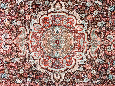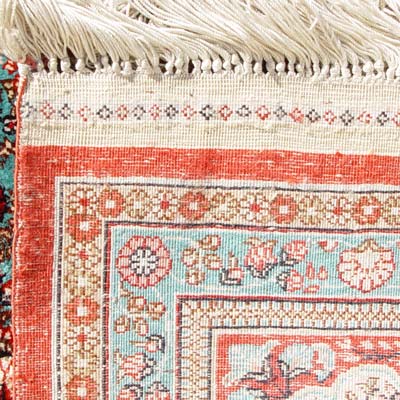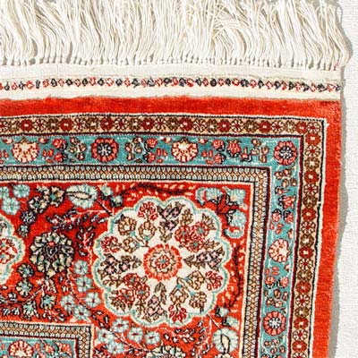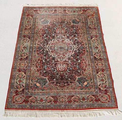 FINE SILK PERSIAN CARPET: Approx 6' x 2'. Tightly woven in an intricate design. Fringe ends. Very good condition. Est. $1800/2500**