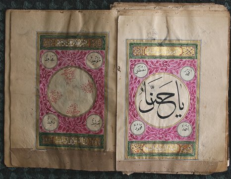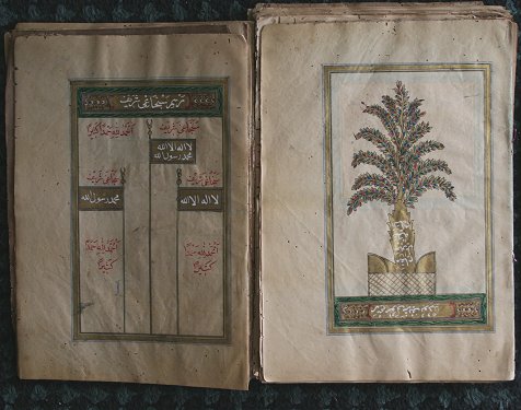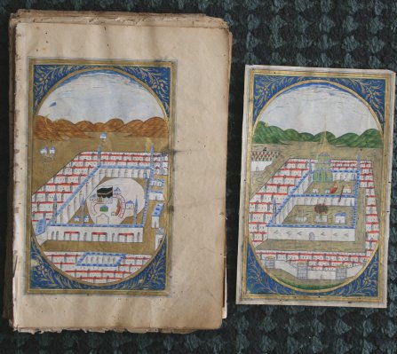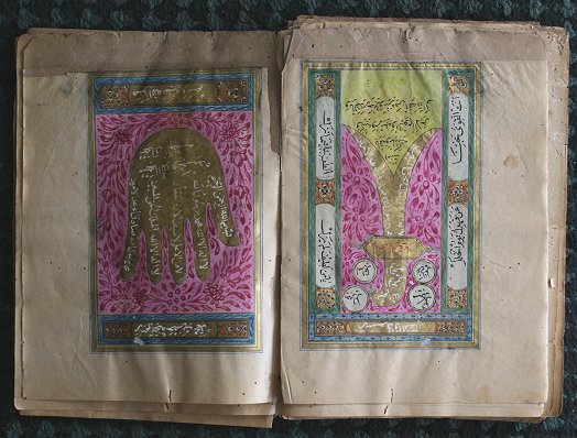 OVER 120 PERSIAN PAINTED MINIATURE PAGES: Approximately 20 are painted front and back, 9 1/2'' x 6 1/2'', unbound, wormholes, tears, creases, etc., very delicate and sold as is, but most of what is in this lot is intact; one page is trimmed.