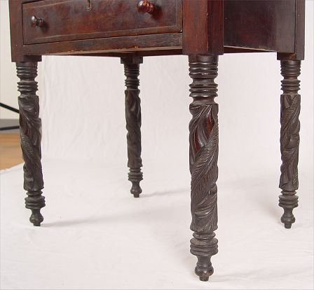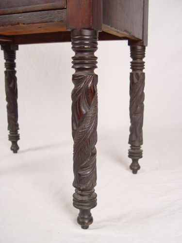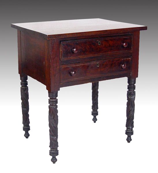 19th C 2 DRAWER CARVED MAHOGANY STAND: Carved legs. Measures 28'' high x 24'' wide x 18'' high