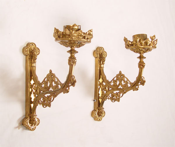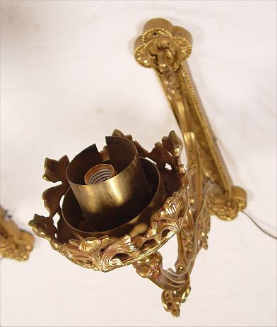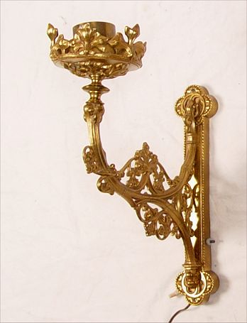 PAIR OF 19TH C VICTORIAN BRASS SCONCE LAMPS: Wired for electricity. Measures 17'' high x 6 1/2'' wide x 17'' deep.