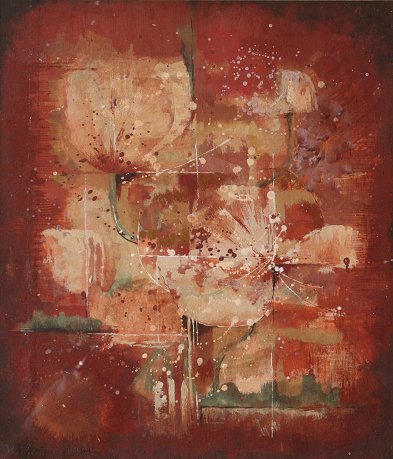 FUKUI, Ryonosuke, (Japan, 1924-1986): Abstract, Gouache, 9 1/2'' x 8 1/4'', signed, fine thin edge gilt frame, 18'' x 16''.