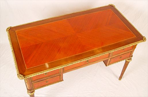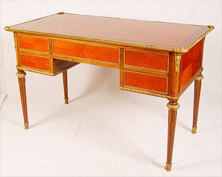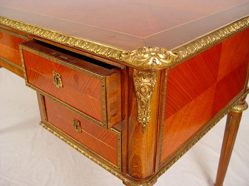 FRENCH STYLE WRITING DESK / VANITY: Ormolu decoration, 5 drawers, 34''h. x 48''w. x 25''d. Late 20th C. construction.