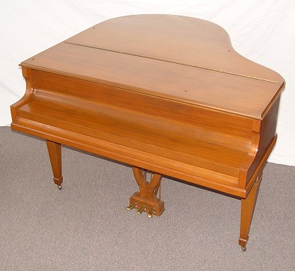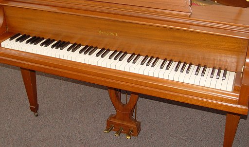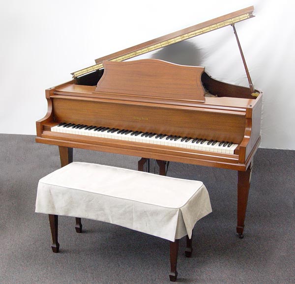 GEORGE STECK BABY GRAND PIANO: Marked on interior of cabinet George Steck & Co.. 88 keys. Electronic humidifier attached to bottom. Measures approx. 37 3/4'' high x 56'' Long x 56'' wide. Comes with bench seat, measures 19 1/2'' high x 37'' x 15 1/2''. Note several light scratches to top.