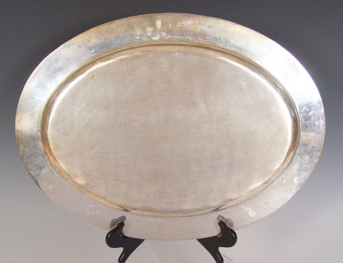 20 INCH TIFFANY & CO STERLING SERVING TRAY: Measures 20'' x 14 7/8'' oval. Approx 76.6 troy oz.