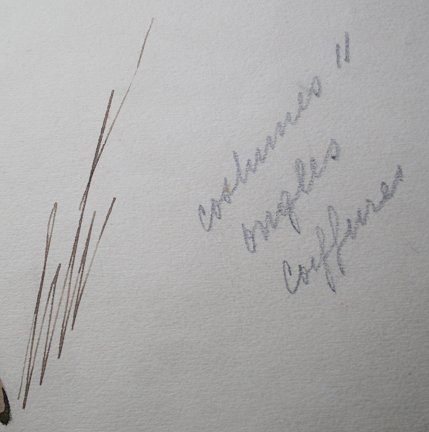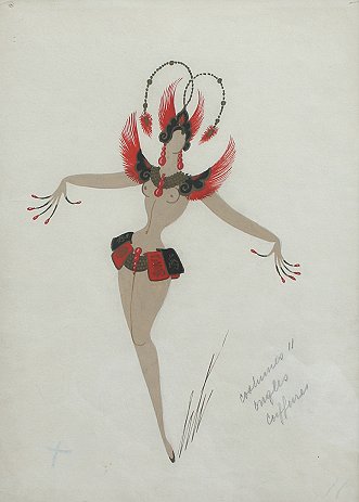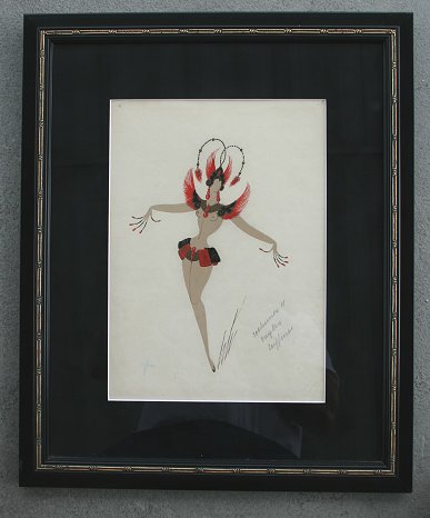 ERTE, (Russian, 1892-1990): Costume Design ''Les Jeaux'', Mah Jongg, Gouache, full paper size 14 1/2'' x 10 1/2'', encased in custom black frame 22'' x 17 1/2'', signed, inscribed in pencil lower right ''Costumes, Ongles? and Coiffures'', also examined out of the frame, inscribed A? 11.878, titled, illegible pencil markings at the top ''M et A-'', and Ch. or Clairvois''. Condition - Several minor spots of foxing, several small tears in lower margin 1/8''. From the collection of celebrated French entertainer and fashion designer Gildas Conan.