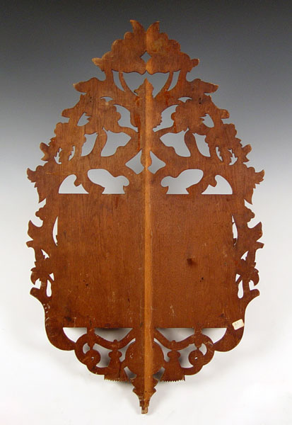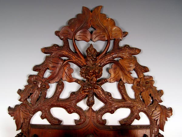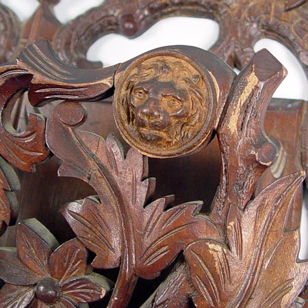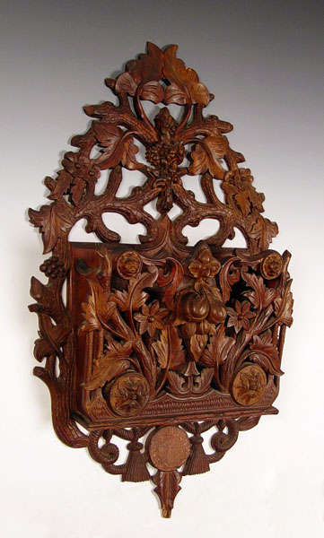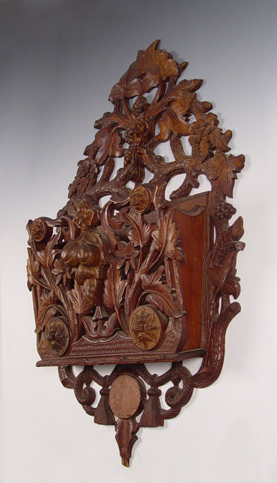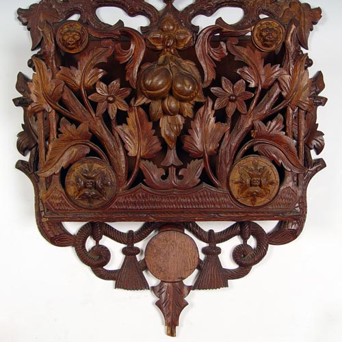 ORNATELY CARVED VICTORIAN HANGING MAGAZINE RACK: Profusely carved with rope, branch & leaves, fruits and lion heads. Measures 38'' high x 21 1/2'' wide x 7'' deep.