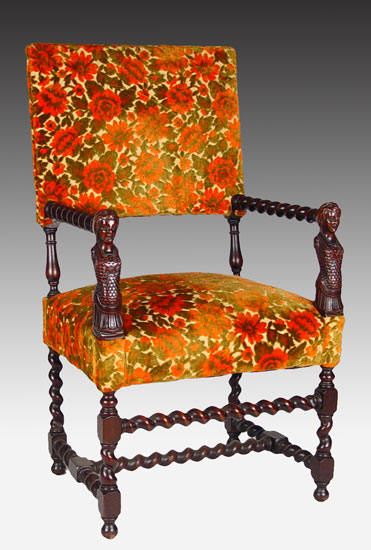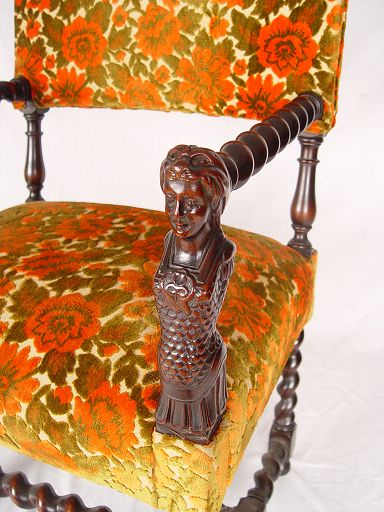 CARVED SPINDLE ARMED VICTORIAN CHAIR: Measures 44 1/2'' high x 24'' wide x 23'' deep.