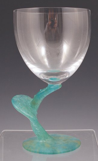 HILTON Mc CONNICO DAUM PATE DE VERRE ART GLASS WINE GOBLET: 6 3/4''h, signed both Hilton McConnico and Daum France.