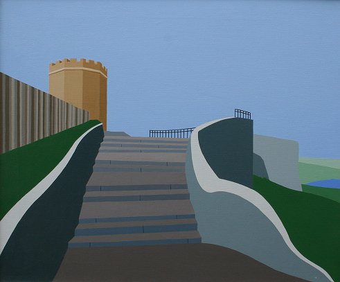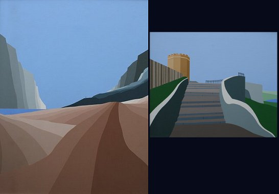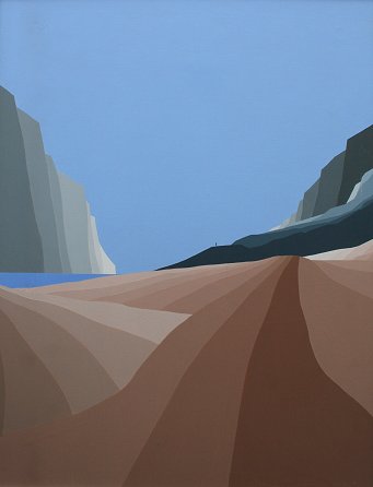 KRUISELBERGEN, Aart Van, (Dutch?, 20th C.): Two Oil/Canvas Landscapes 1) ''#18 Figure in Landscape'', 32'' x 25'', monogrammed lower right, signed and titled verso, thin edge metal frame with wear, 33'' x 26 1/6''. 2) ''#22 Bullwork'', 18'' x 21 3/4, monogrammed lower right, titled and signed verso, thin edge metal frame, 19 1/4'' x 22 3/4''.