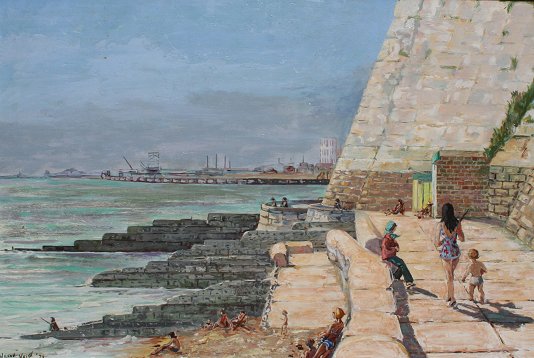 WHITE, Wynne, (American, 20th C): ''Telscombe Cliffs Bay, North Hanem, Sussex'', Oil/Board, 16'' x 24'', encase in painted gilt frame with wear, 19'' x 26 1/2''.
