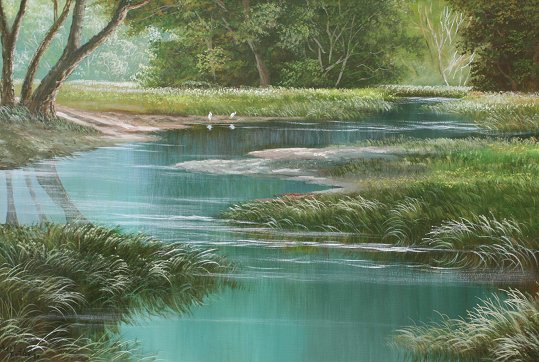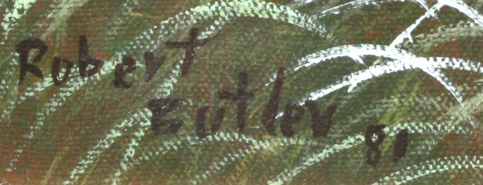 BUTLER, Robert, (American, 20th C.): Florida Highwaymen Stream Scene with Herons, Oil/Canvas, 24'' x 36'', signed, gold frame 28'' x 40''.