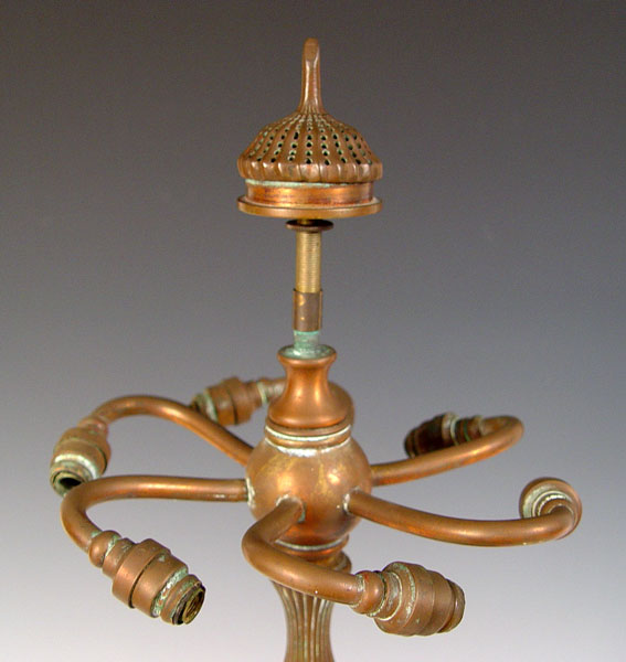 TIFFANY STYLE TABLE LAMP BASE: 6 light on base ''Tiffany Studios 373''. Measures 27 1/2'' high to top of finial x 8 3/4'' base dia.