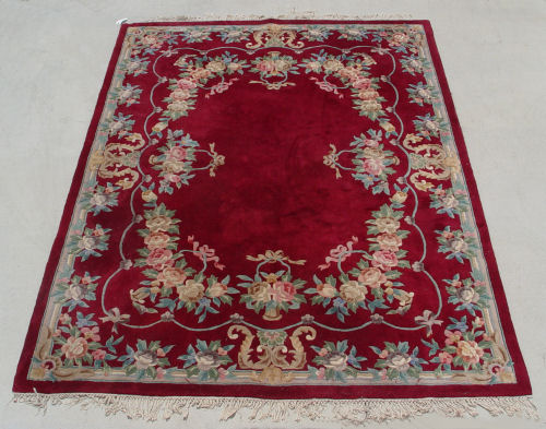 CHINESE SCULPTED CARPET: Deep fuchsia ground, approx. 12' x 7'10''.