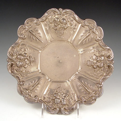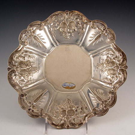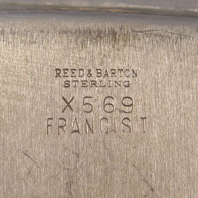REED & BARTON FRANCIS I STERLING TRAY: Serving tray in the Francis I pattern by Reed & Barton. Measures 11 1/2'' dia. Approx 17.5 troy oz. Note dullness to sterling.