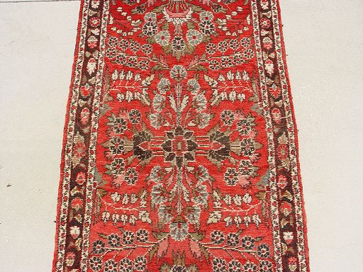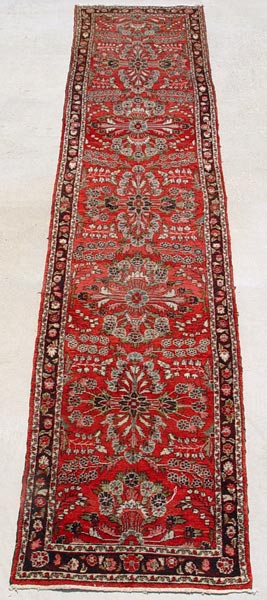 FLORAL DESIGN RED CARPET RUNNER: Red field with floral design medallions. Measures approx 15' 3'' x 3'.