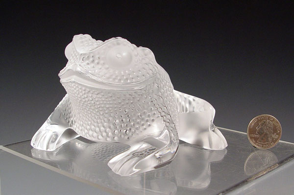 LALIQUE CRYSTAL GREGOIRE FROG: Frosted & clear glass, signed Lalique France. Measures 2 7/8'' high x 4 1/8'' long.