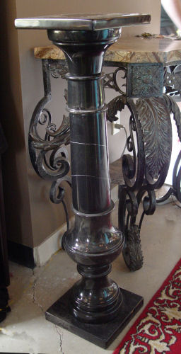 CONTEMPORARY POLISHED BLACK MARBLE PEDESTAL COLUMN: Measures 39 3/8'' high x 10 1/4'' square.