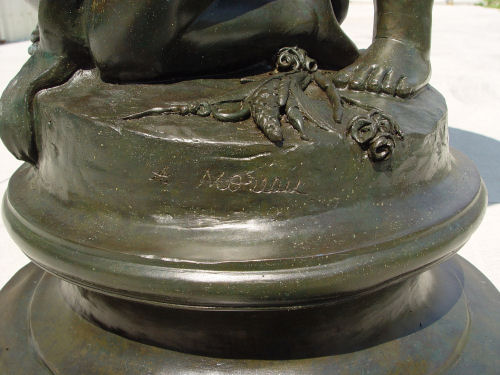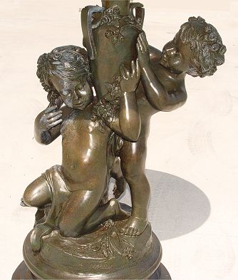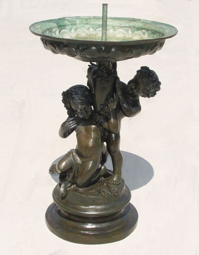 CHERUBIC BRONZE FOUNTAIN: Statue after Moreau, 49''h, 29'' dia. You will need to furnish the electrical components.