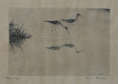 KLEIBER, Hans, (American, 1887-1967): ''Yellow Legs, One'', Dry Point Etching, sight size 6 1/2'' x 8 1/4'', pencil signed and titled, monogrammed in the plate, dated 1930, faux grain painted frame with minor wear, 7 1/2'' x 9'', not examined out of the frame.