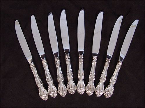 8 GORHAM STERLING MELROSE DINNER KNIVES: Set of 8 modern hollow knives in the later Melrose pattern by Gorham. 8 7/8'' long. Approx 4 troy oz.