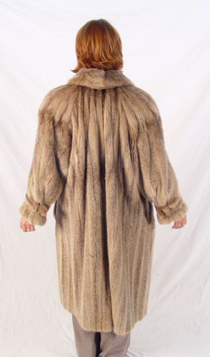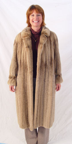 GEORGEOU FULL LENGTH MINK COAT: Long sleeves with nice detail of a band on the cuff. Collar and lapel. Velvet lined pockets. Lining and coat are in excellent condition. 47'' long overall, 17'' shoulder to shoulder, 22'' shoulder to cuff.