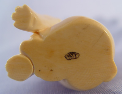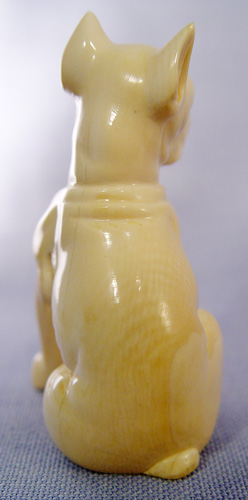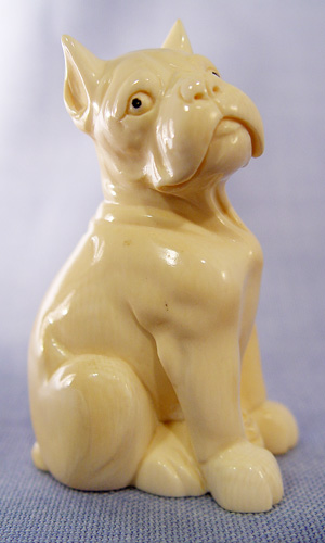CARVED IVORY MODEL OF A DOG: Artist signed on the underside, 3'' h.