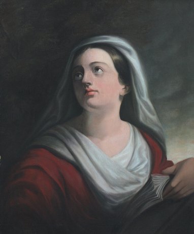 HUNTINGTON, Daniel ATT, (1816-1906): ''Sybil'', OIL/C, 33'' x 27'', no visible signature, gesso frame with wear, 38'' x 32''. Purchased at an auction in upstate NY years ago, hung at Hamilton College, was also hung for sale at Child's Gallery in Boston. Relined, several areas of inpaint, needs cleaning. Was sold at auction as being by Daniel Huntington. Est. $8000/12000**