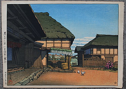 HASUI, Kawase, (Japanese, 1883-1957): Autumn at Farmhouse, Ayashi, 1946, Woodblock, 10 1/4'' x 14 1/4'', unframed. Est. $300/500**