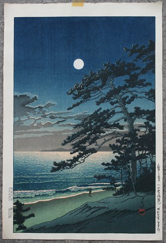 HASUI, Kawase, (Japanese, 1883-1957): Moon at Ninomiya Beach, 1933, Woodblock, 15 1/2'' x 10 1/2'', unframed. Est. $300/500**