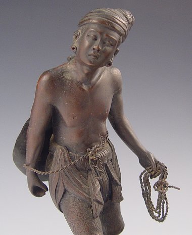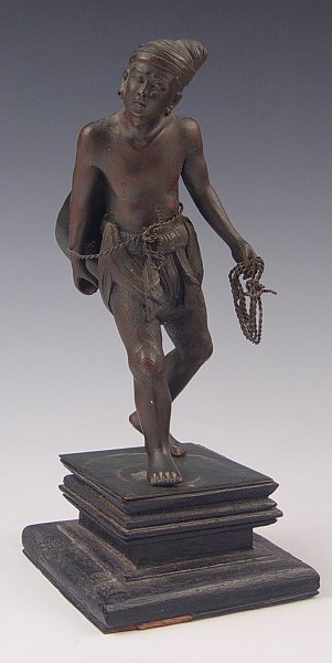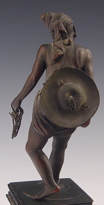 BRONZE ASIAN MODEL OF A MAN: 6'' high, 8'' overall on wood plinth. Est. $200/400**