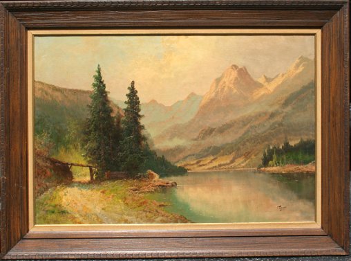 LANGE, J., (Austrian, 20th C.): Austrian Lakeside, OIL/C, 24'' x 36'', signed, framed, 32'' x 44''.