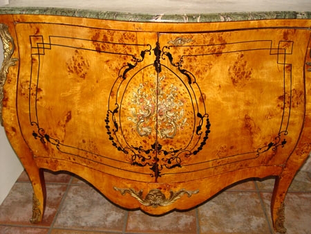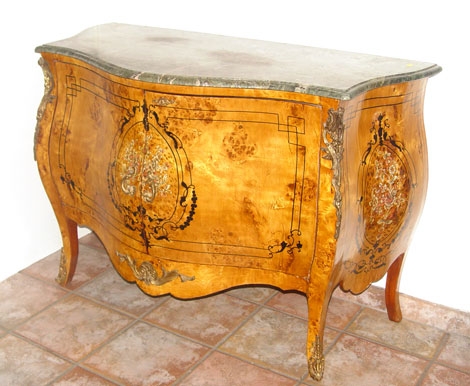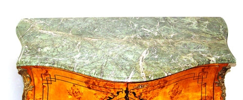 GREEN MARBLE TOP BOMBAY COMMODE: Measures 35'' high x 50'' wide x 24'' deep.