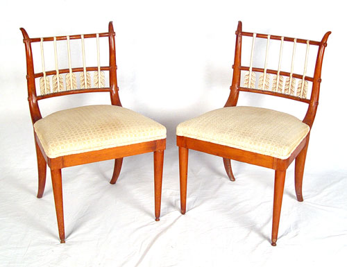 PAIR BEIDERMEIR STYLE SIDE CHAIRS: Featuring carved arrow form splats. Measure 31'' high x 17'' wide x 20'' deep.
