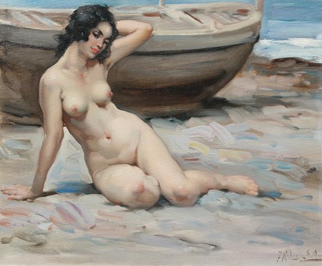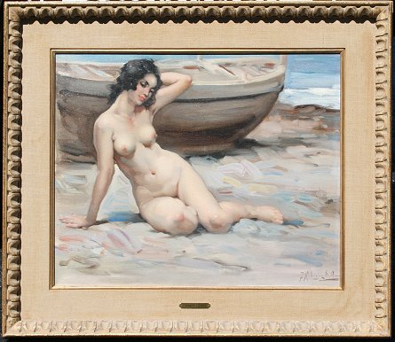 SANCHEZ CLEMENTE, Francisco Rodriguez, (Spain, 19/20th C): Nude on the Beach, OIL/C, 18'' x 22'', signed, framed, 25'' x 29''. Est. $8000/12000**