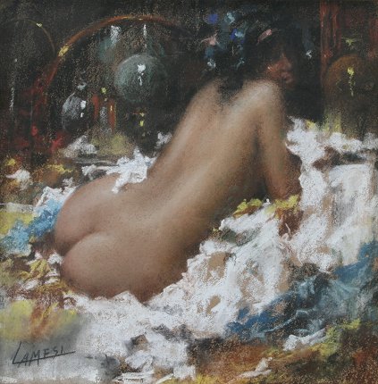LAMESI, Temistocle, (Italian, 1870-1951): Reclining Nude, Pastel, 11 1/2'' x 11 1/2'', signed, gilded frame, 18 1/2'' x 18 1/2''. Est. $800/1200**