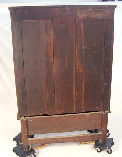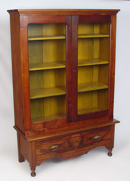 AMERICAN COUNTRY BOOKCASE / CHINA HUTCH ON STAND: Glass door case recessed over 2 drawers. Measures 64 3/4'' high x 43 1/4'' wide x 17'' deep