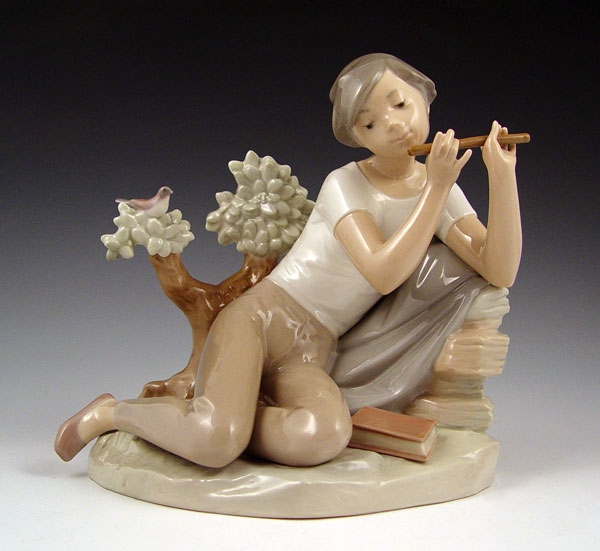 LLADRO STUDENT FLUTE PLAYER 4837: Retired in 1983, 8 1/4'' high