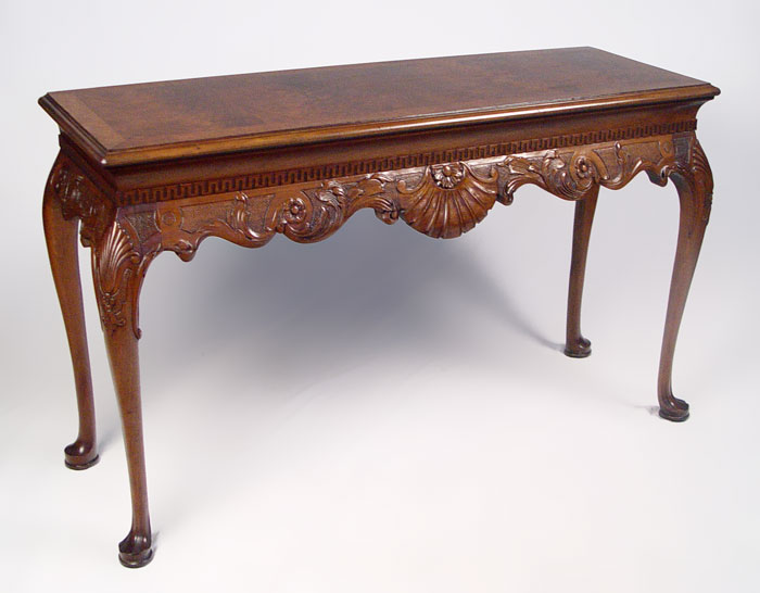 WELL MADE CARVED MAHOGANY SOFA TABLE: Shell and floral carved, maker unknown. Measures 33'' high x 53'' wide x 18'' deep.