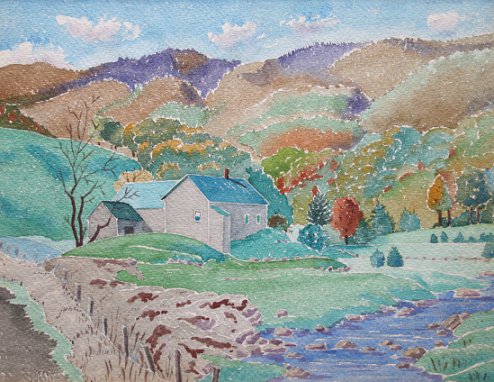 SIPLE, Ella S., (American, 1889-?): ''Nebraska Notch, Vermont'', W/C, 9'' x 12'', signed and titled verso, framed, 15'' x 17''.