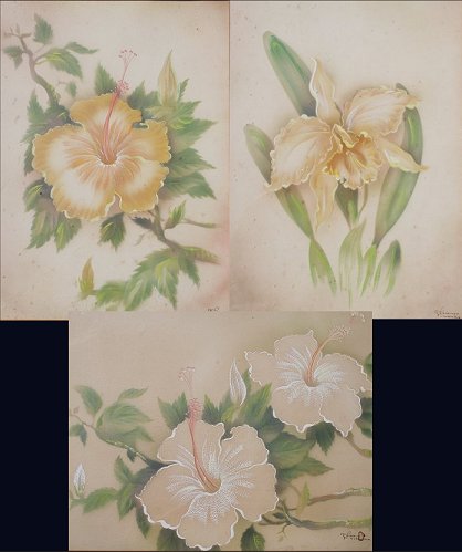 FREEMAN, Tip, (American, 20th C.): 3 Floral Airbrush Paintings, 19'' x 13'', signed Tip Freeman, Miami, framed. 24 1/2'' x 19''.