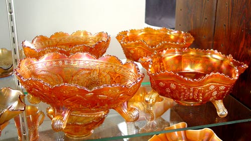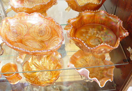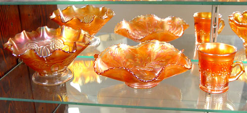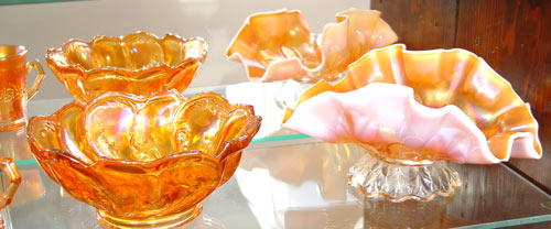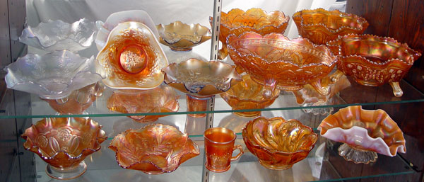 10 PIECE MARIGOLD, PALE GREEN, WHITE CARNIVAL GLASS