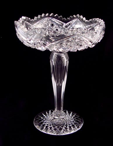 SIGNED J. HOARE BRILLIANT PERIOD CUT GLASS COMPOTE: 7'' dia., 9''h.